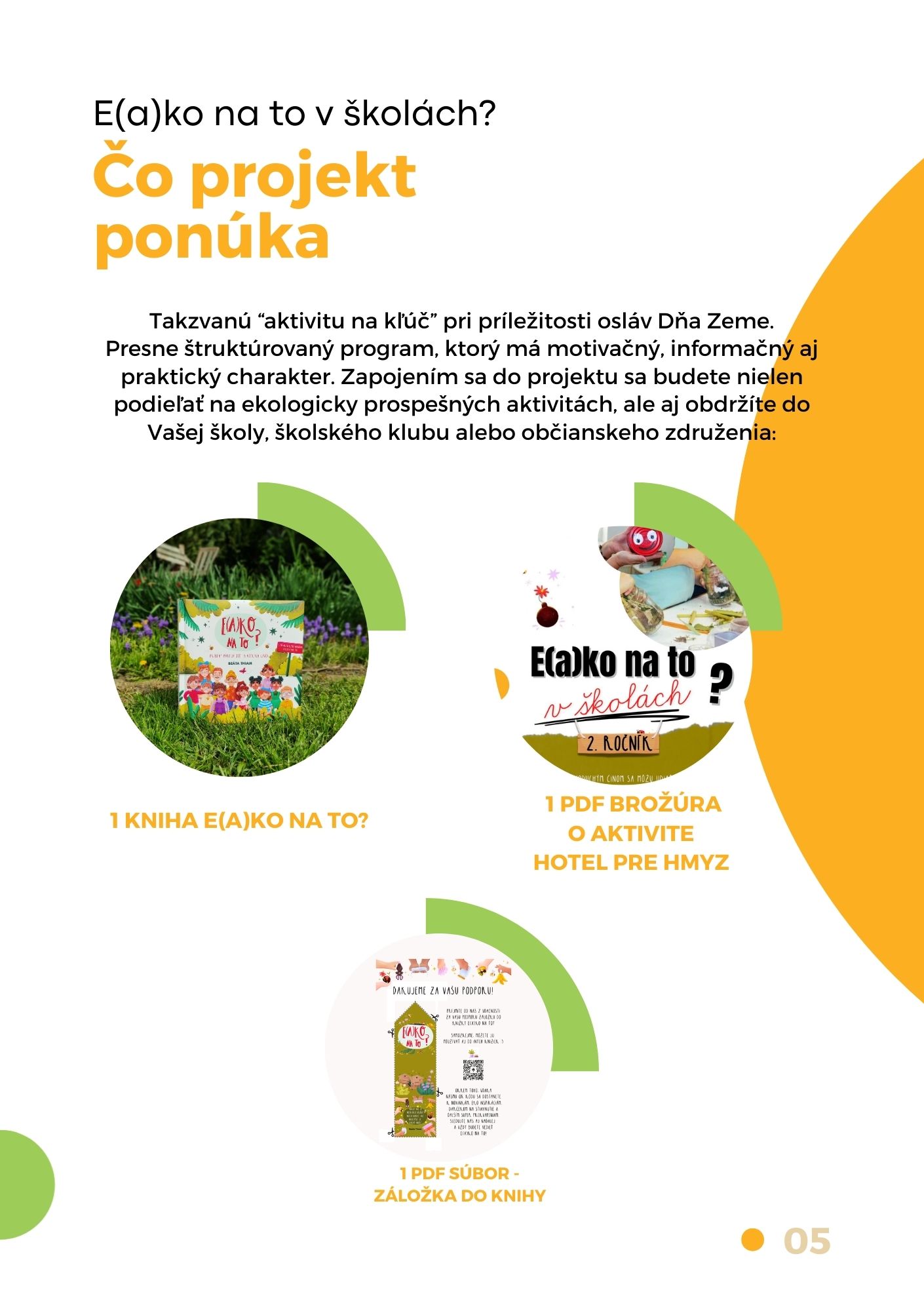 - 1 PDF súbor – brožúra – E(a)ko na to v školách? – Záložka do knihy